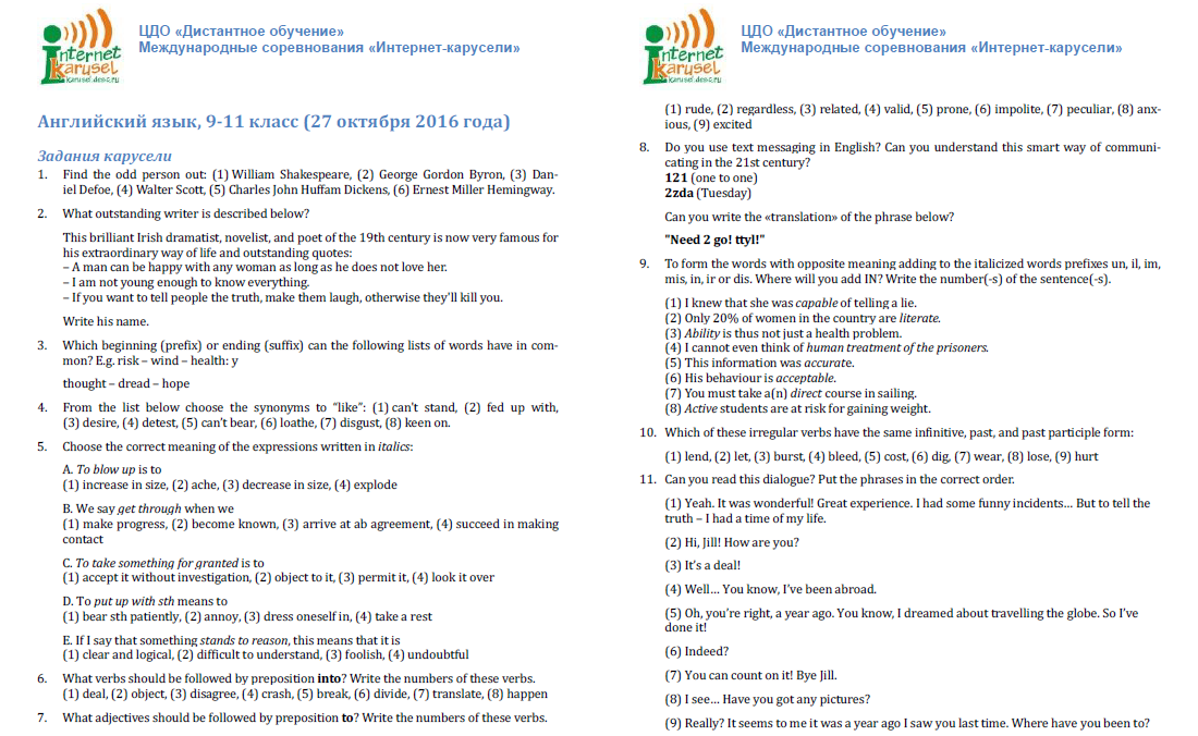 - Английский язык, 9-11 класс: стр. 1-2, стр. 3-4